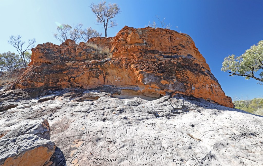 Gray Rock is a sandstone outcrop that was a stopping point for Cobb and Co in the 1870s. The site originally had a hotel which was a changing point for the coach horses. The visiting public and some locals have carved their names on the sandstone rock leaving a lasting history of the travellers to the region.
