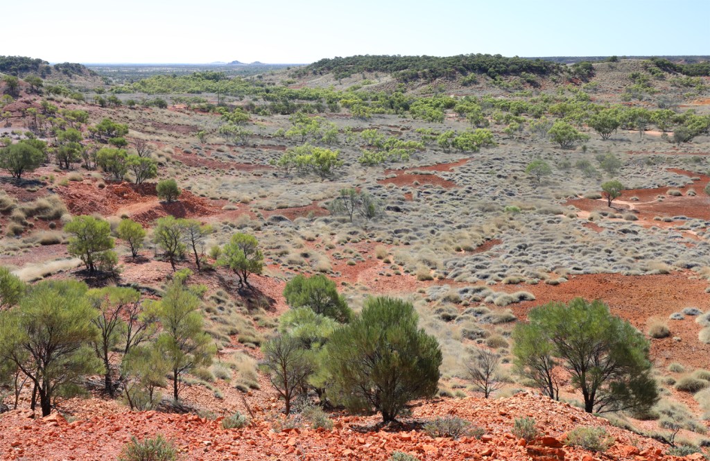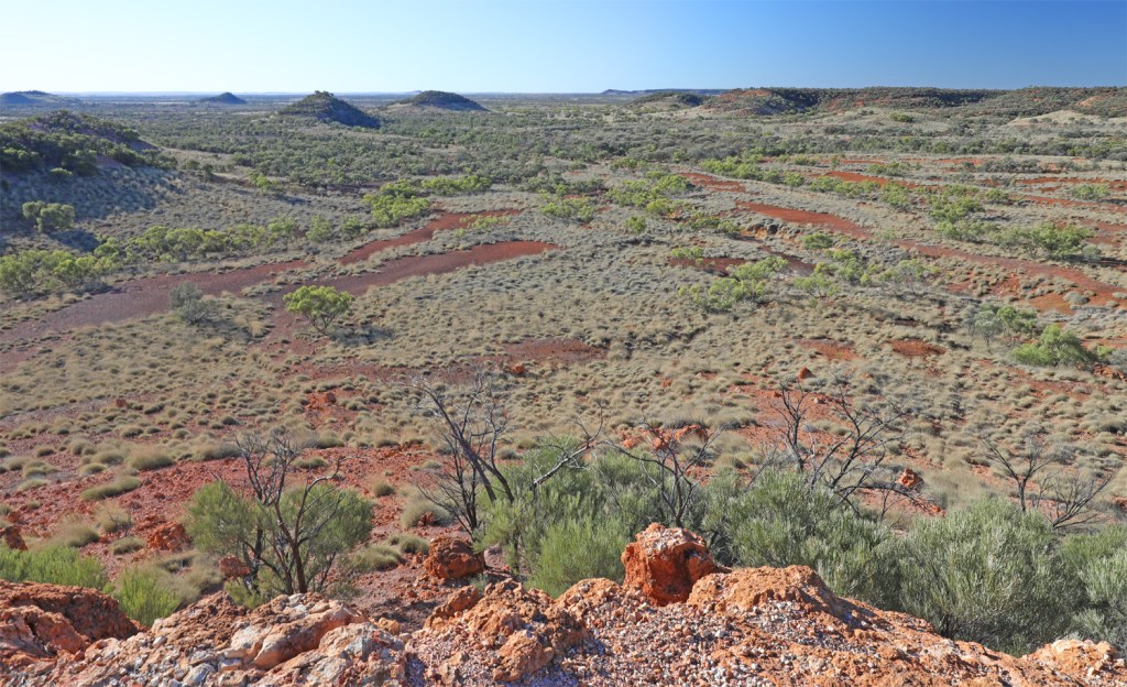 Spinifex trail around the mesas of the jump-up country behind the centre.