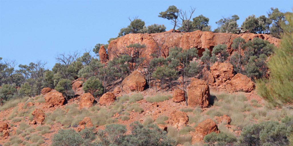 On a side road to seek out some of the resident feathered friends. There were many areas of red gibber ironstone on the tops of the jump ups.