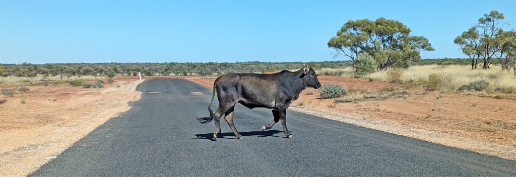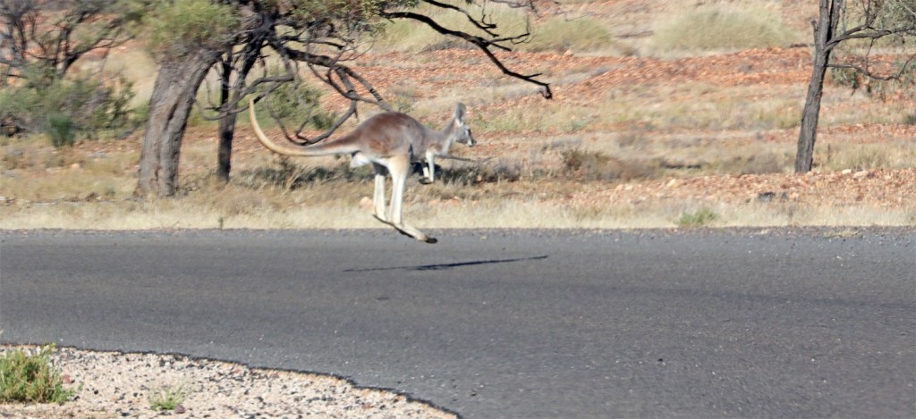 Lark Quarry is 110km south-west of Winton. Lark Quarry is the name of the excavation site that uncovered the Dinosaur Stampede. The drive is half bitumen road surface and half gravel. We started fairly early and met a few animals at breakfast time.