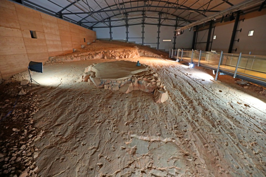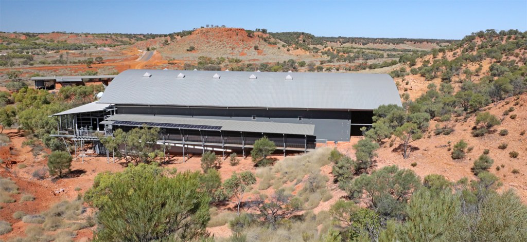 The Dinosaur Stampede fossils are protected from the elements inide this building built into a hillside where the fossils were discovered.