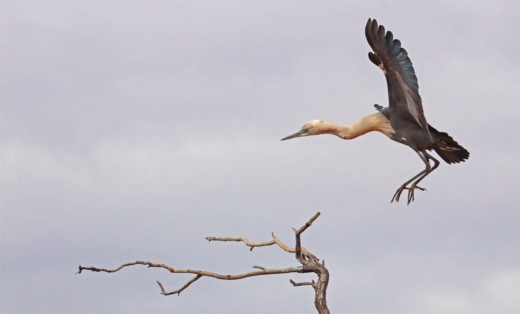 Landing gear down! White-necked heron.