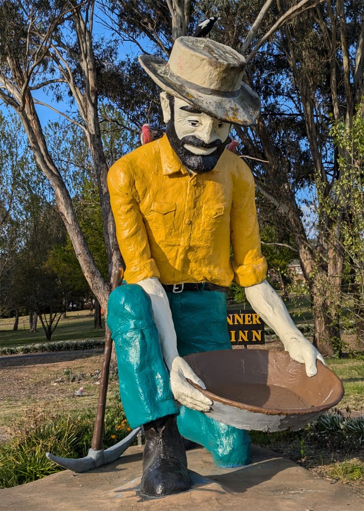 The Big Gold Panner (I think his name is Troy Weight – look it up) represents Bathurst’s history as the first region in Australia to discover gold and the home of the first gold rush. Edward Hammond Hargraves (his friends just called him Ed) is credited with finding the first payable goldfields at Ophir, near Bathurst in 1851. News of gold spread quickly around the world and in 1852 alone, 370,000 immigrants arrived in Australia. I asked Troy what he liked most about gold and he told me (bursting into song), “I feel the rush; Addicted to the gold crush; I feel the rush; It’s so good, it’s so good.”