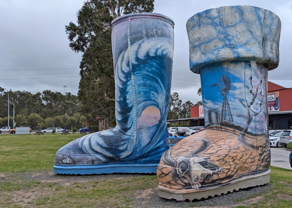 The Big Ugg Boots at Thornton near Maitland. Some people get the wool pulled over their eyes but sometimes over their feet too.