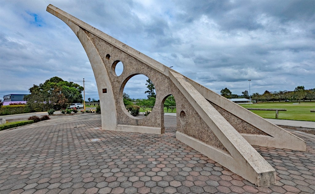 Now here is a shady character! The Big Sundial at Singleton was once The World’s Biggest Sundial when built in 1987. Its 7.6 metre size earned that title at the time which has since been bettered elsewhere but it still lays claim to being the largest one-piece sundial in the Southern Hemisphere. Where is the mouth of a sundial? Near the 5 o’clock shadow.