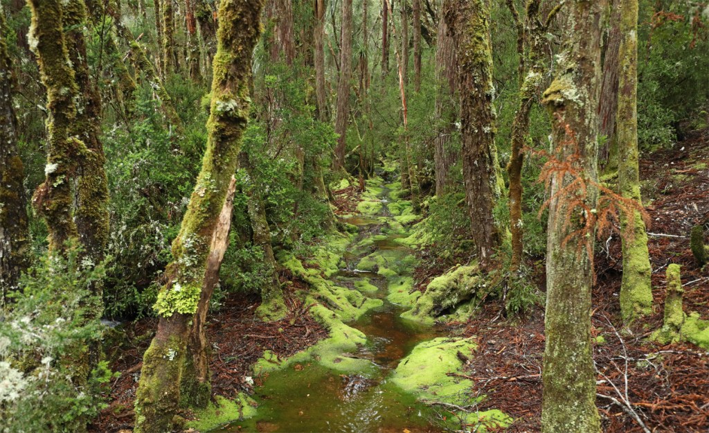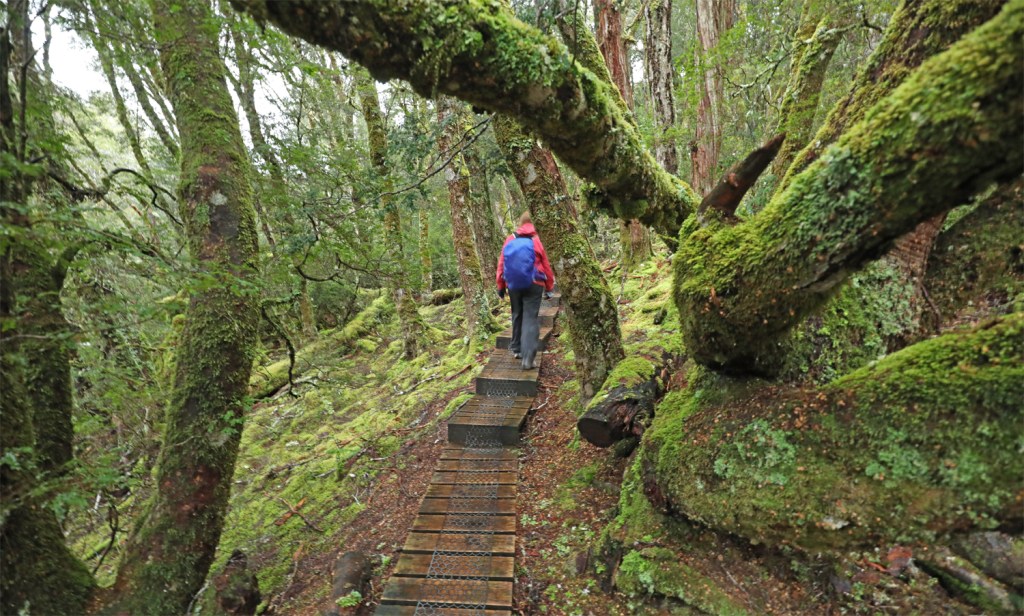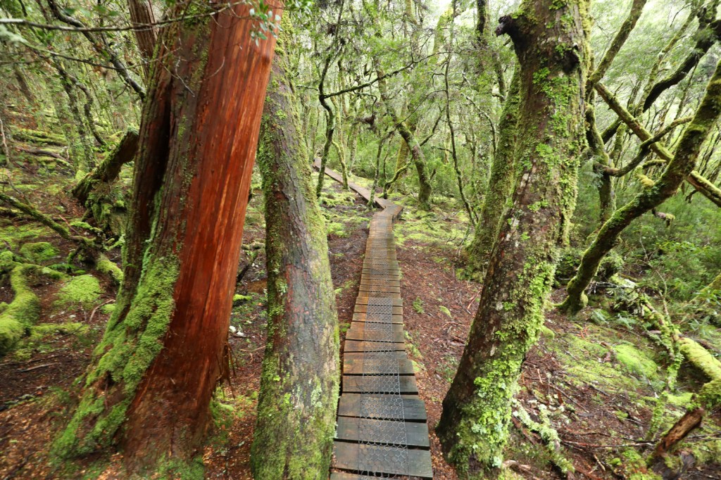 The forest looks like a magical movie set meandering through rainforest of King Billy pines, pandani and Tasmania’s renowned deciduous beech.