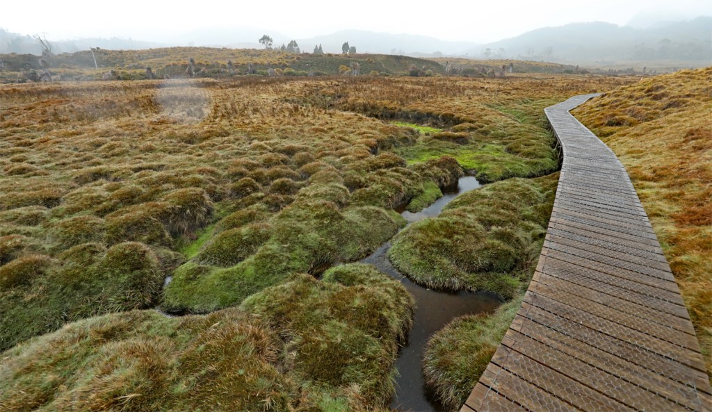 A boardwalk crosses the Ronny Creek valley of peat, moss and button grass. We were dry but keeping the cameras dry was a bit harder.
