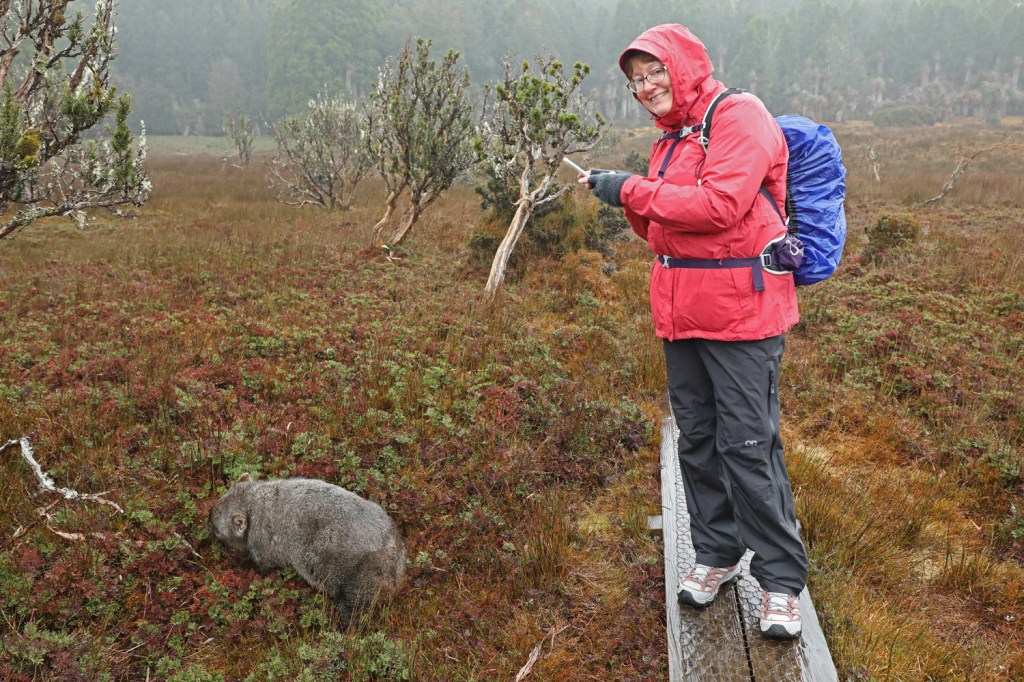 Today is very wet – the goretex jackets, overpants and boots are worth the cost in this type of weather as we stay dry all day despite the downpours and persistent misty rain. We catch the shuttle bus to Ronny Creek about 8km into the park.