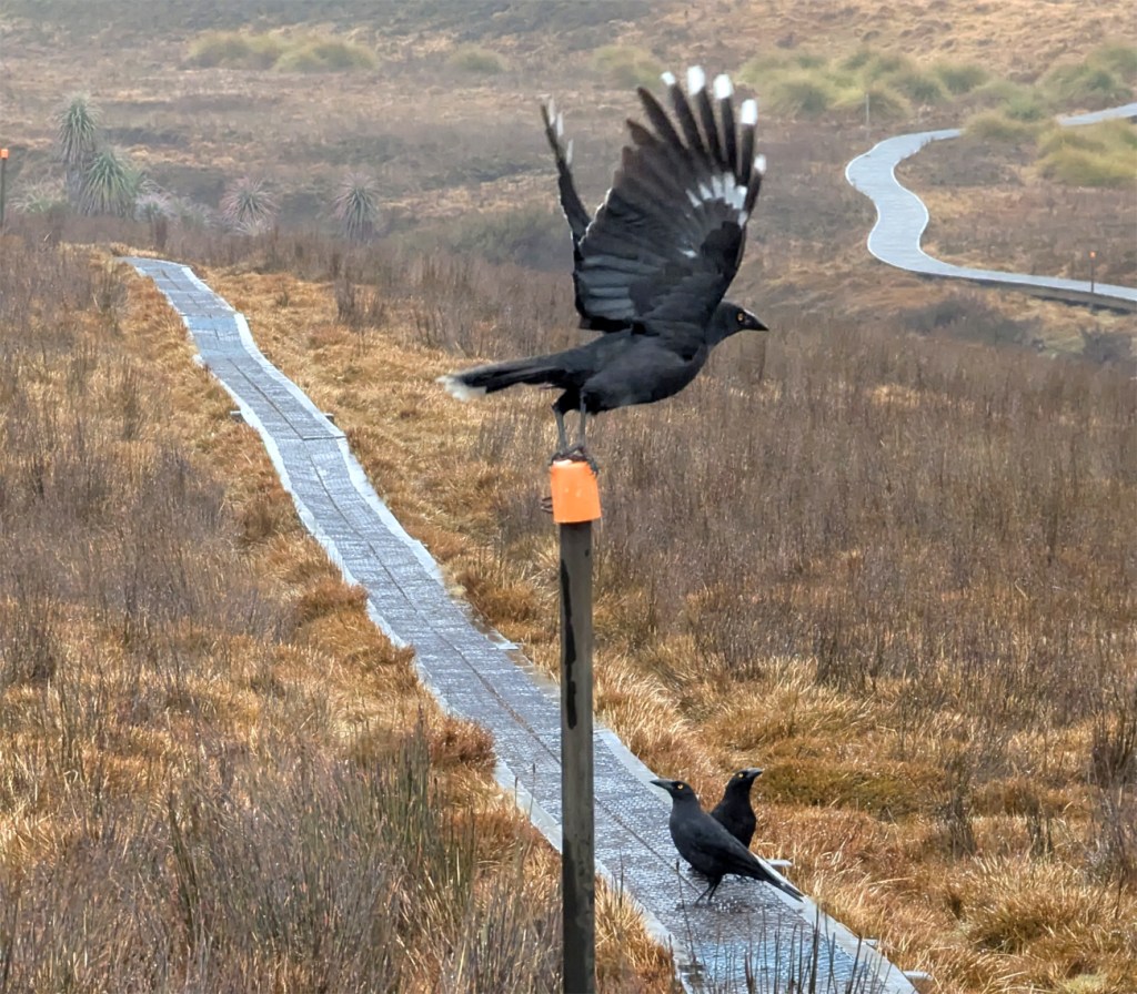 Black currawongs are the most commonly encountered bird at higher altitudes.