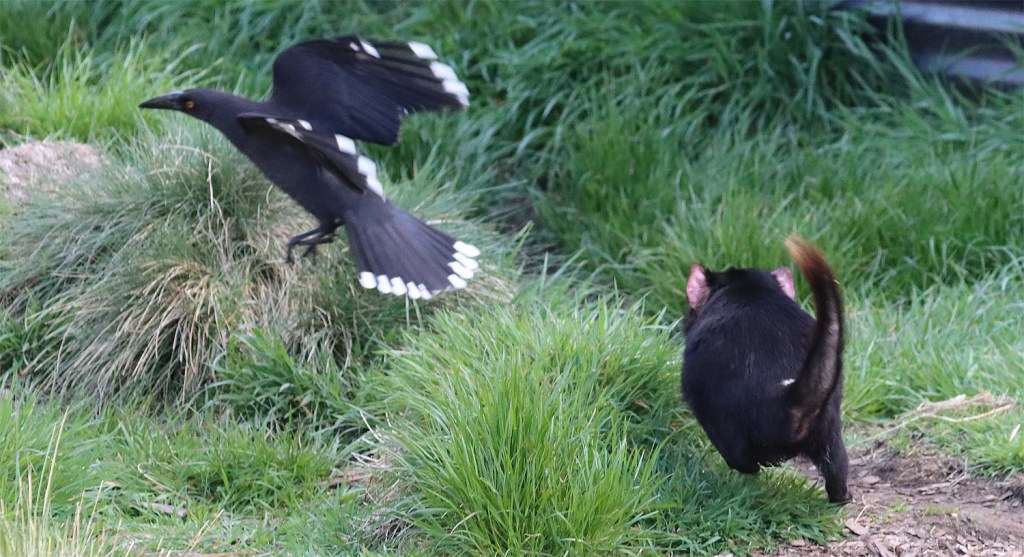 As well as the Tasmanian devils, the sanctuary is also home to the closely related Spotted-tail and Eastern quolls. Tasmania’s three largest carnivorous marsupials are all now threatened in one way or another in the wild.