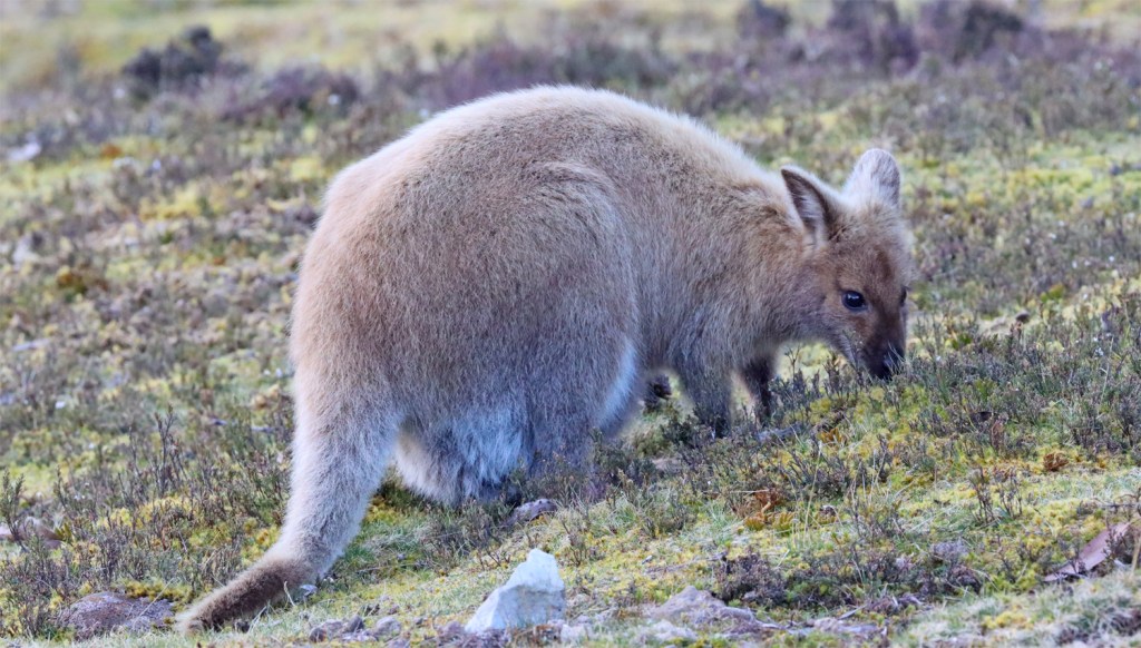 An unusual colour form of a Bennetts Wallaby living outside the sanctuary.