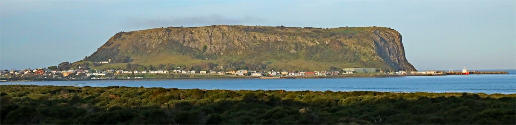 The Nut at Stanley from Trewethies Lookout on the approach to town.