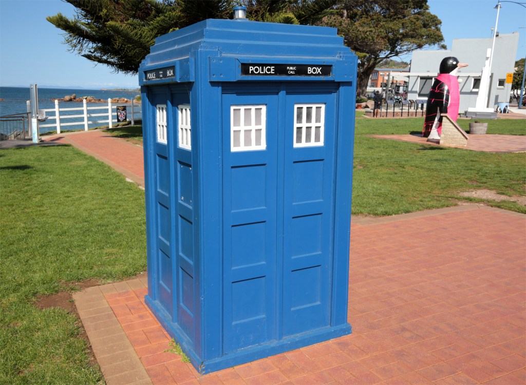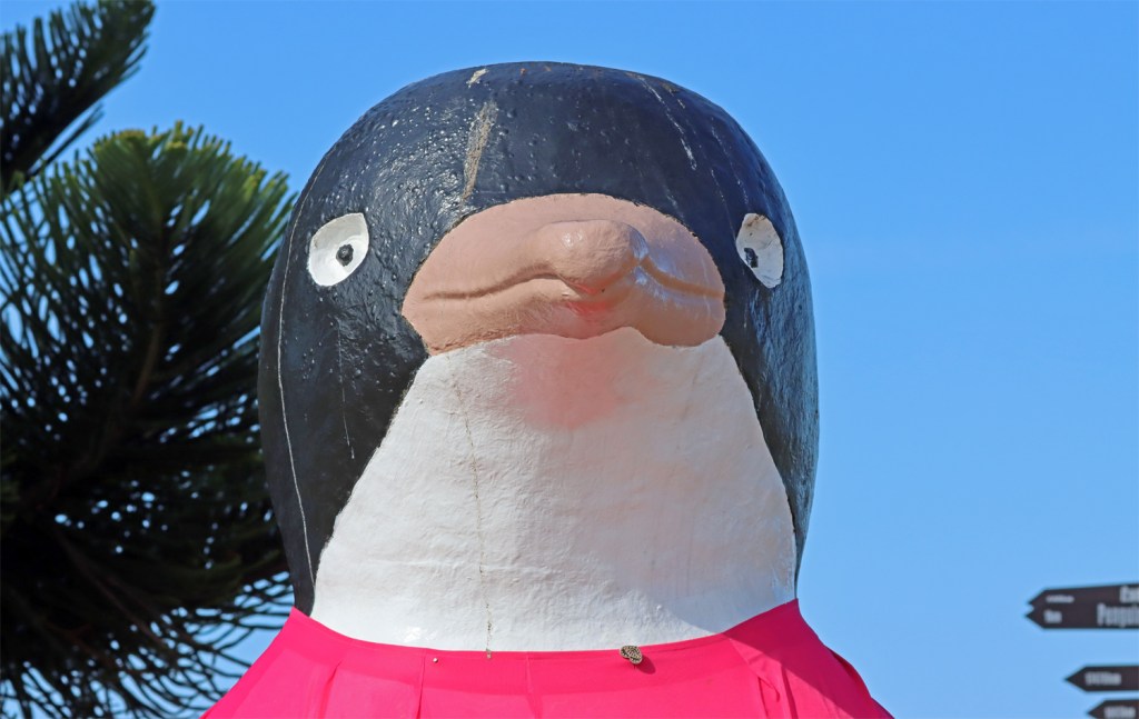 Penguin is one of the many towns along this coastline where penguins come ashore at night. Here is The Big Penguin…at Penguin, promoting a good cause.