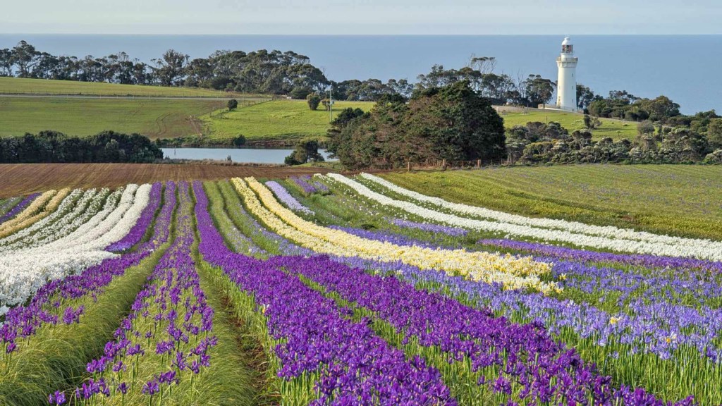 Table Cape Tulip Farm is home to Van Diemen Quality Bulbs. They are a specialist flower bulb producers of tulips, liliums and Dutch iris. There is an annual Tulip Festival every October when the blooms are at their peak flowering. The perils of daylight saving – we arrived 2 hrs and 45 mins before sunset and it was already too late for entry. These are some views from the roadside.