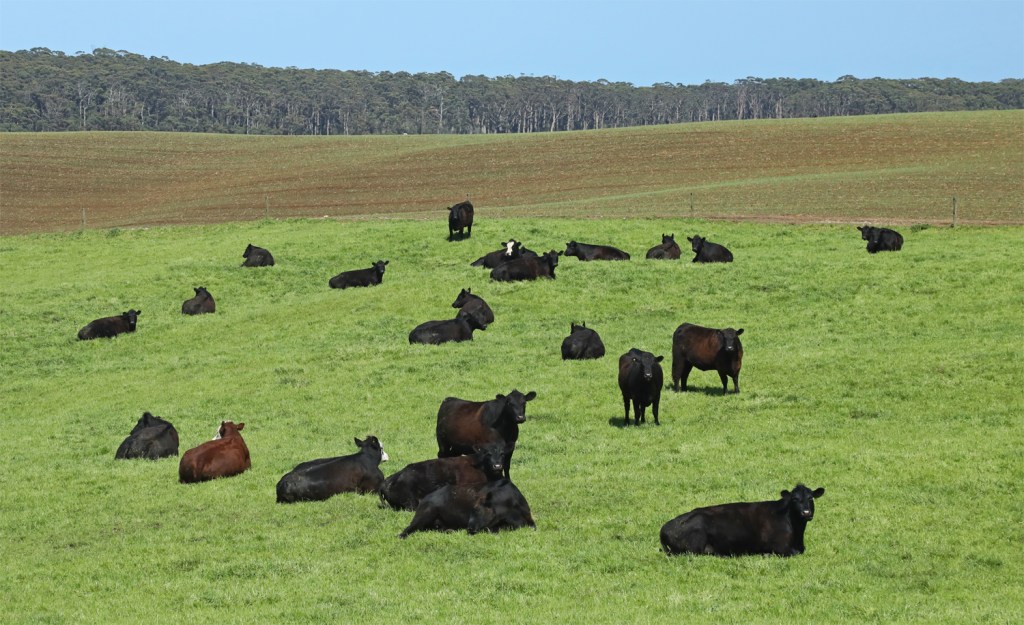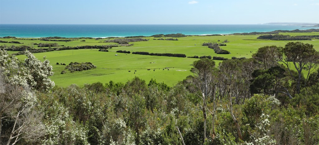 Cattle near Marrawah – huge numbers of both beef and dairy cows in the green paddocks.