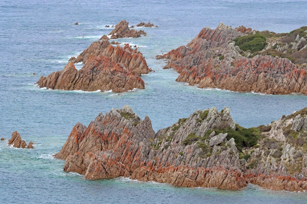 The rocks of Rocky Cape are among the oldest in Tasmania. These ancient Precambrian quartzites have been uplifted and folded to produce contorted patterns.