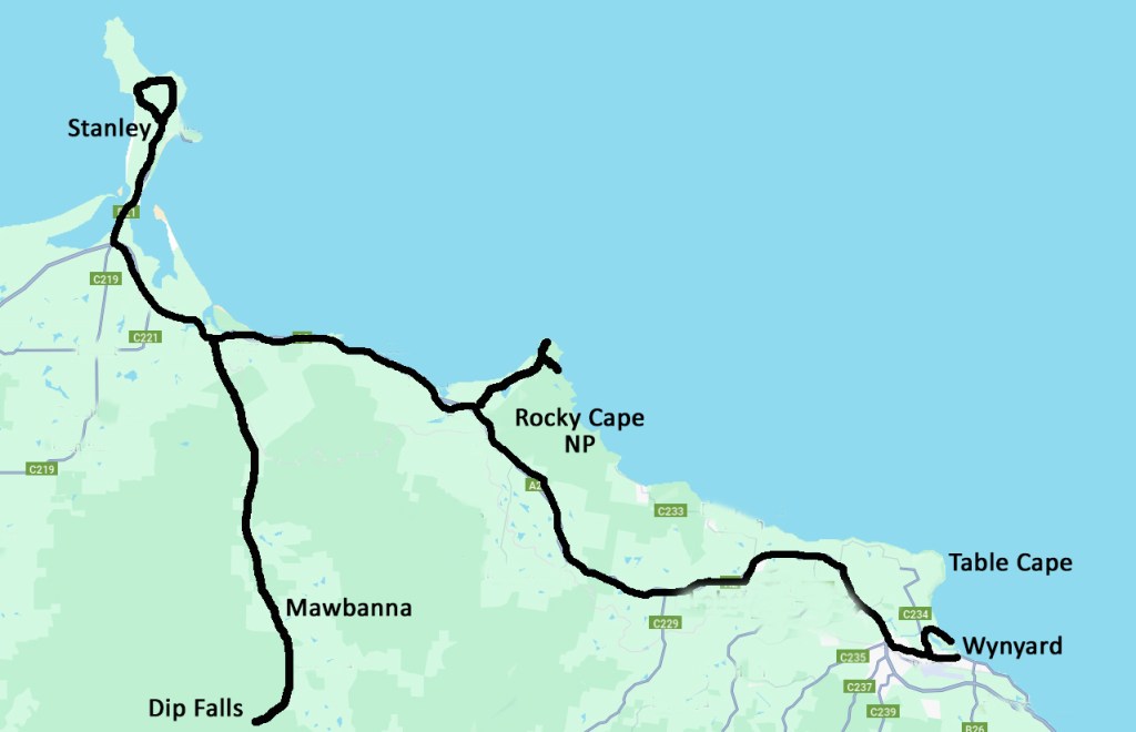 I walked part way up the Nut with an unwell travelling companion remaining at the car. We then took a short drive up a valley to Mawbanna.