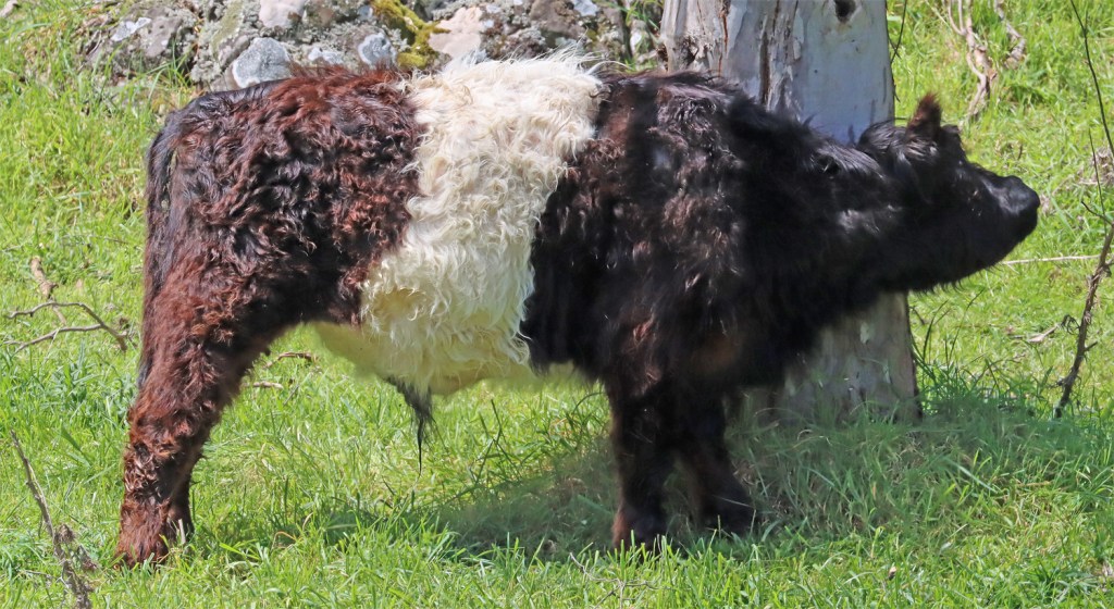 On the plateau behind Burnie are verdant green rolling hills populated by all manner of sheep and bovines like this Belted Galloway – a real chocolate and vanilla beauty – Top Deck cattle.