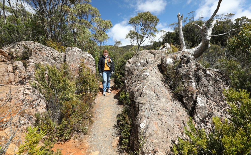 Hartz Mountains National Park has been shaped by ancient glaciers and is on the edge of Tasmania’s remote and rugged south-west wilderness. The park has a high backbone of dolerite and small glacial lakes and cirques across its alpine plateau. This is the walk to the Waratah lookout.