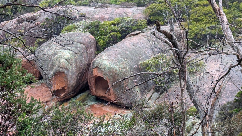 Huge granite rocks looking like some giant creature’s fossilised cocoon.