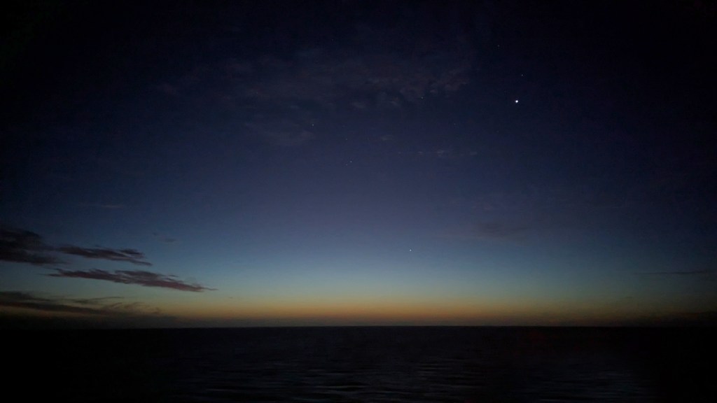 Wash from the ship and the stars in the south from the middle of Bass Strait.
