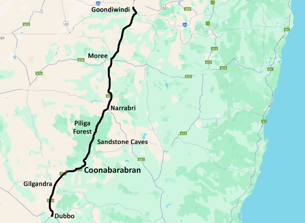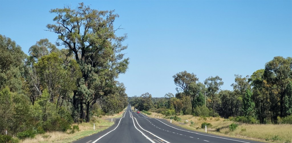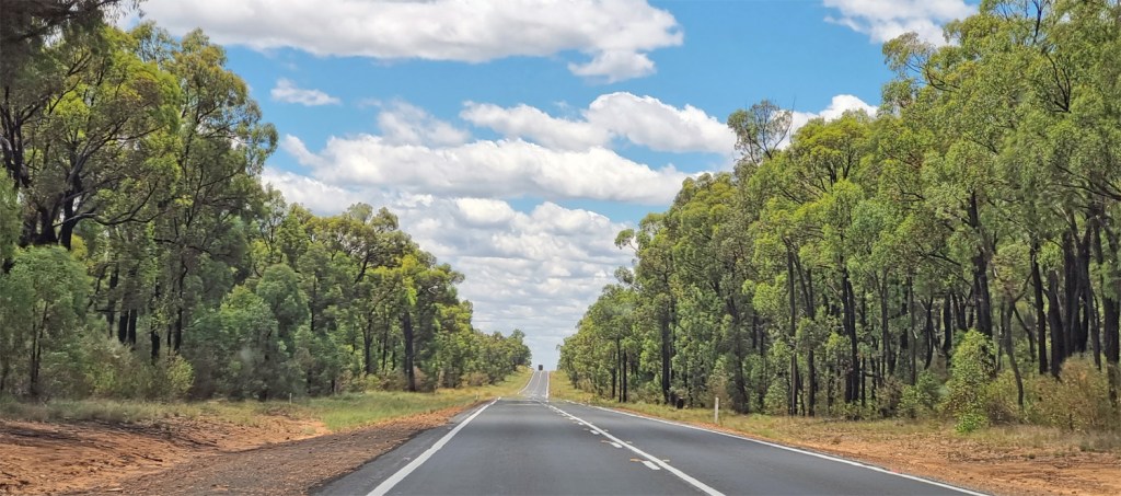 Back on the Newell Highway heading north – my clever co-pilot managed to take a photo without a truck in the frame.
