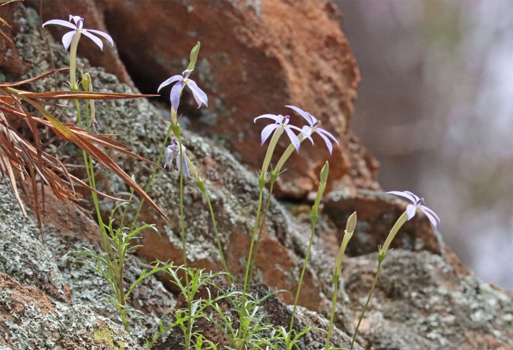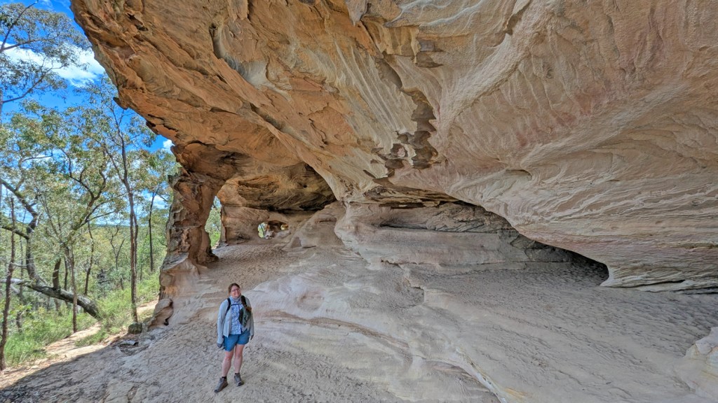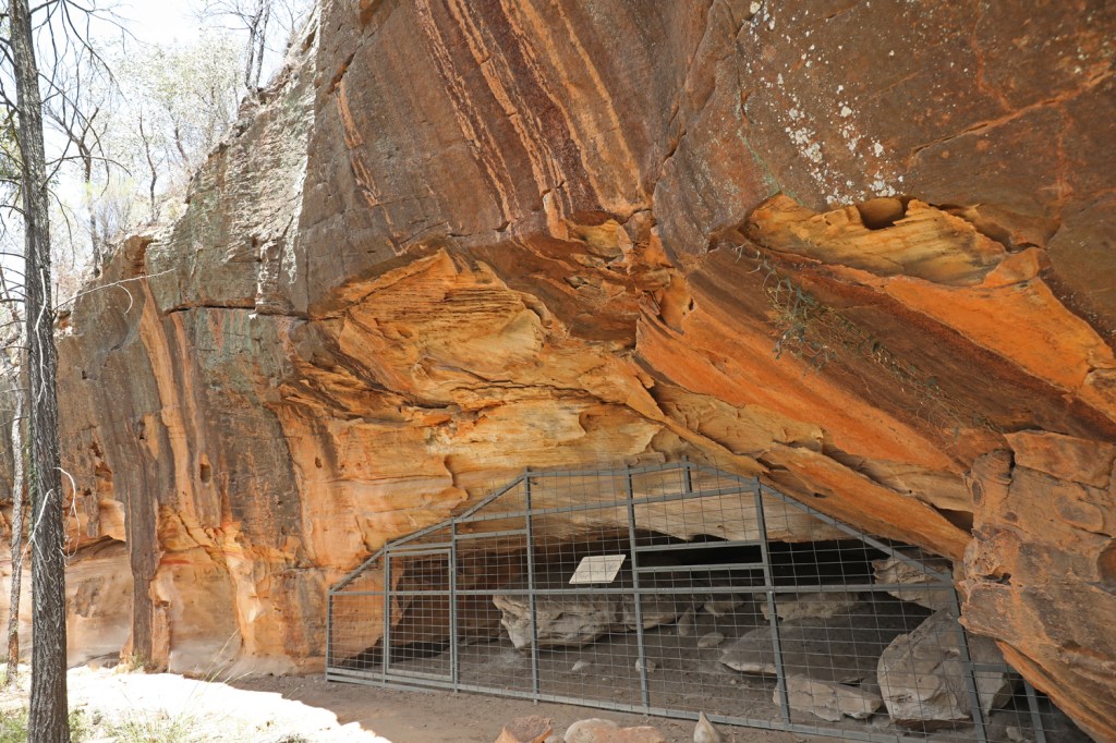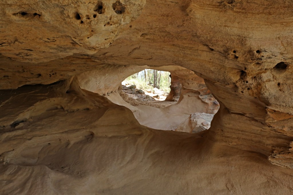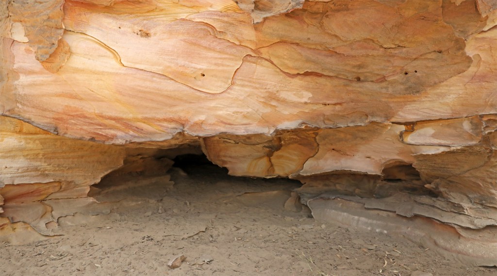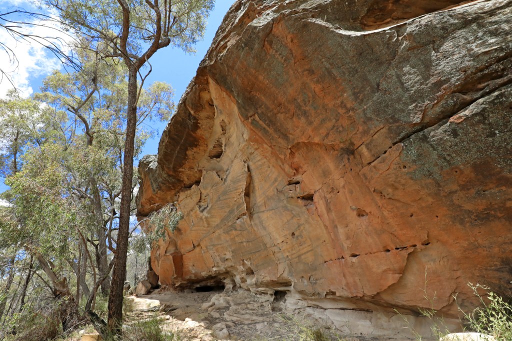We passed through Gilgandra, the Warrumbungles and Coonabarabran to be able to spend time at our major quest for the day – the Sandstone Caves in the Piliga Scrub. The caves are not signposted to minimise vandalism but the Kamiliroi People are happy for respectful visitors to the site. Flannel flowers lined the roadside and into the bush on both sides of the road.